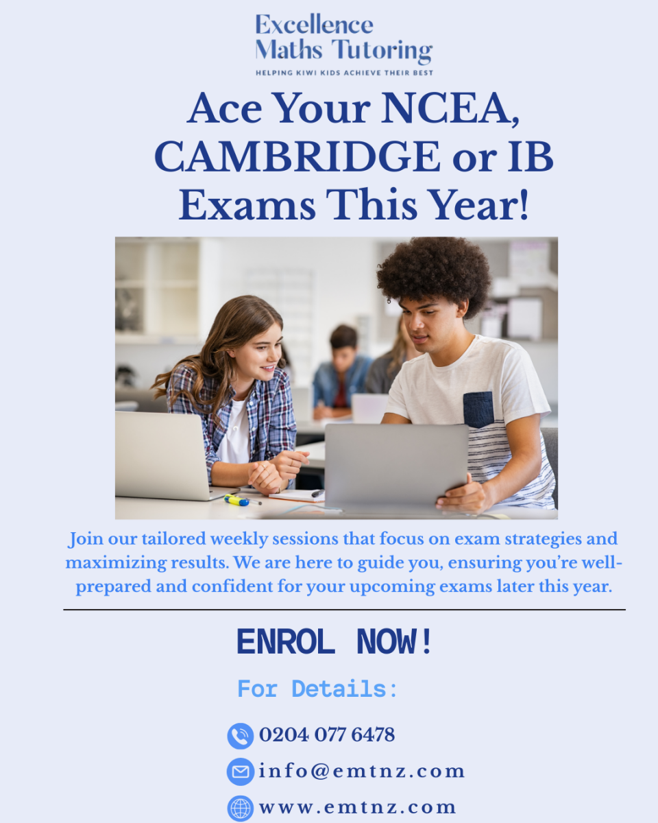 Our weekly sessions are designed to help you master NCEA, Cambridge, or IB exams with proven strategies and personalized support.