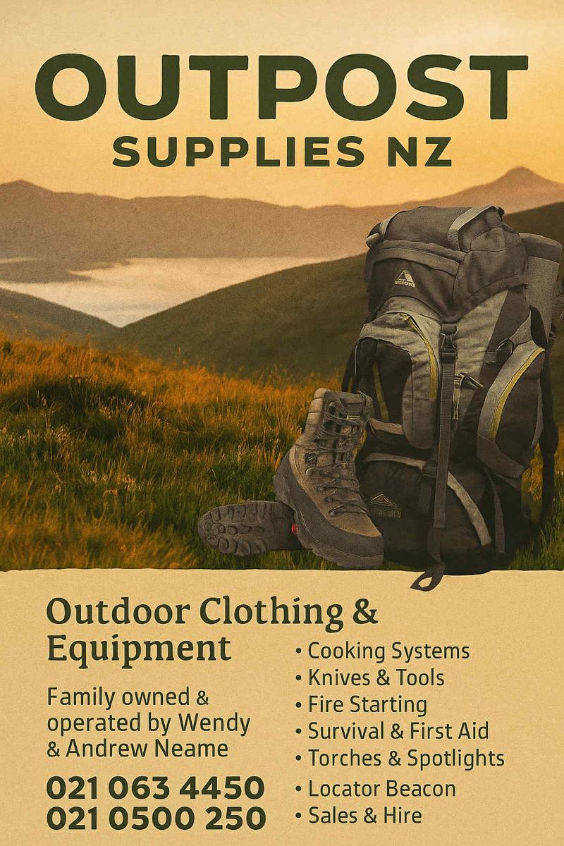 Pick up from 53 Quarantine Road Tāhunanui or online 24/7 at www.outpostsupplies.co.nz...