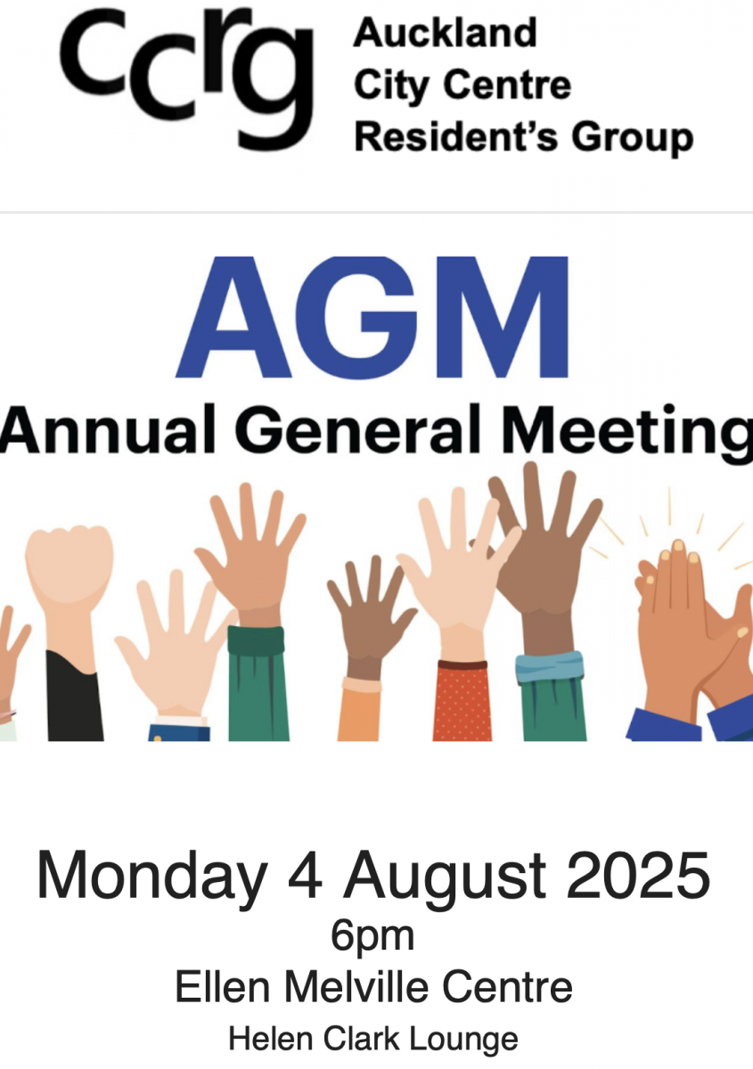 City Centre Residents Group AGM is Mon 4 Aug 6pm at our Ellen Melville Centre - All docs for the meeting can be found ccrg.org.nz...