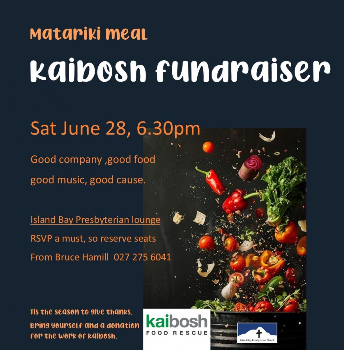 Come for a delish dinner out - a three course meal - and your donation goes 100% and direct to Kaibosh! Good food, good music, good company, good cause. Email to book: office@ibpc.org.nz or ph 383 8699