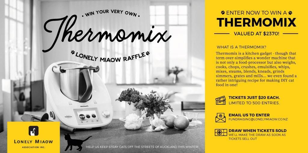 We have a raffle for your chance to win a Thermomix,RRP is $2370. All proceeds will be going directly to help us rescue and care for stray and abandoned cats and kittens in the greater-Auckland area.