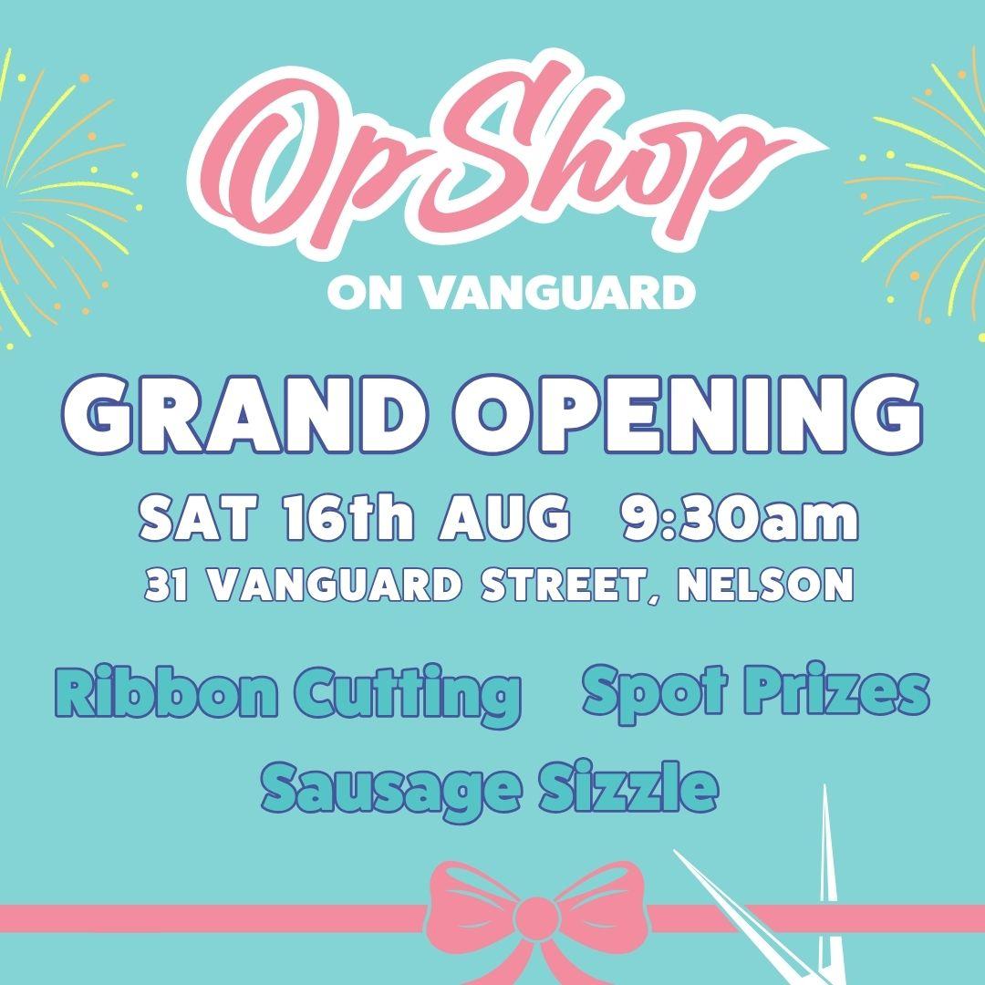 Join us for the grand opening of Nelson Tasman Hospice’s brand-new Op Shop on Vanguard, Saturday, 16th August at 31 Vanguard Street!