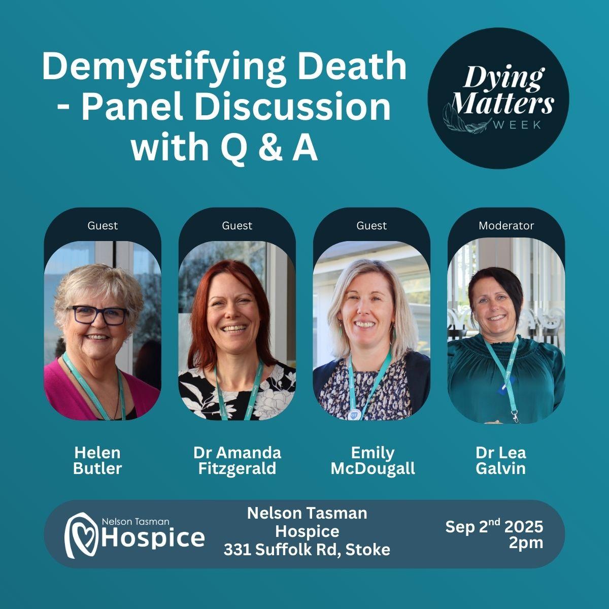 Moderated by Dr Lea Galvin, Clinical Services Director at Nelson Tasman Hospice and Clinical Psychologist.
