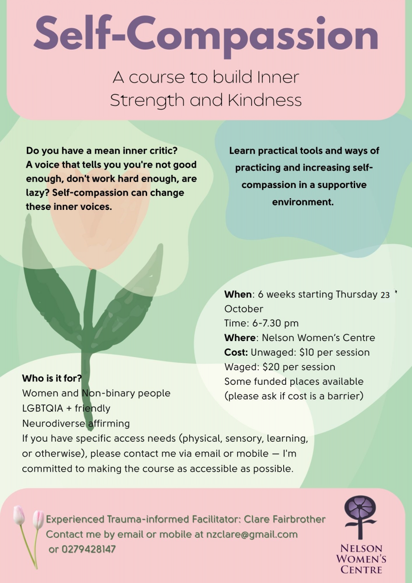 Where: Nelson Women’s Centre, Trafalgar Street.
