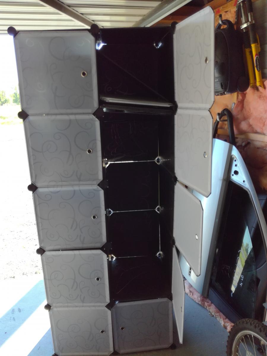 The storage unit is based on clip together sides, enough to make 1 wardrobe and a 2 cube storage unit.