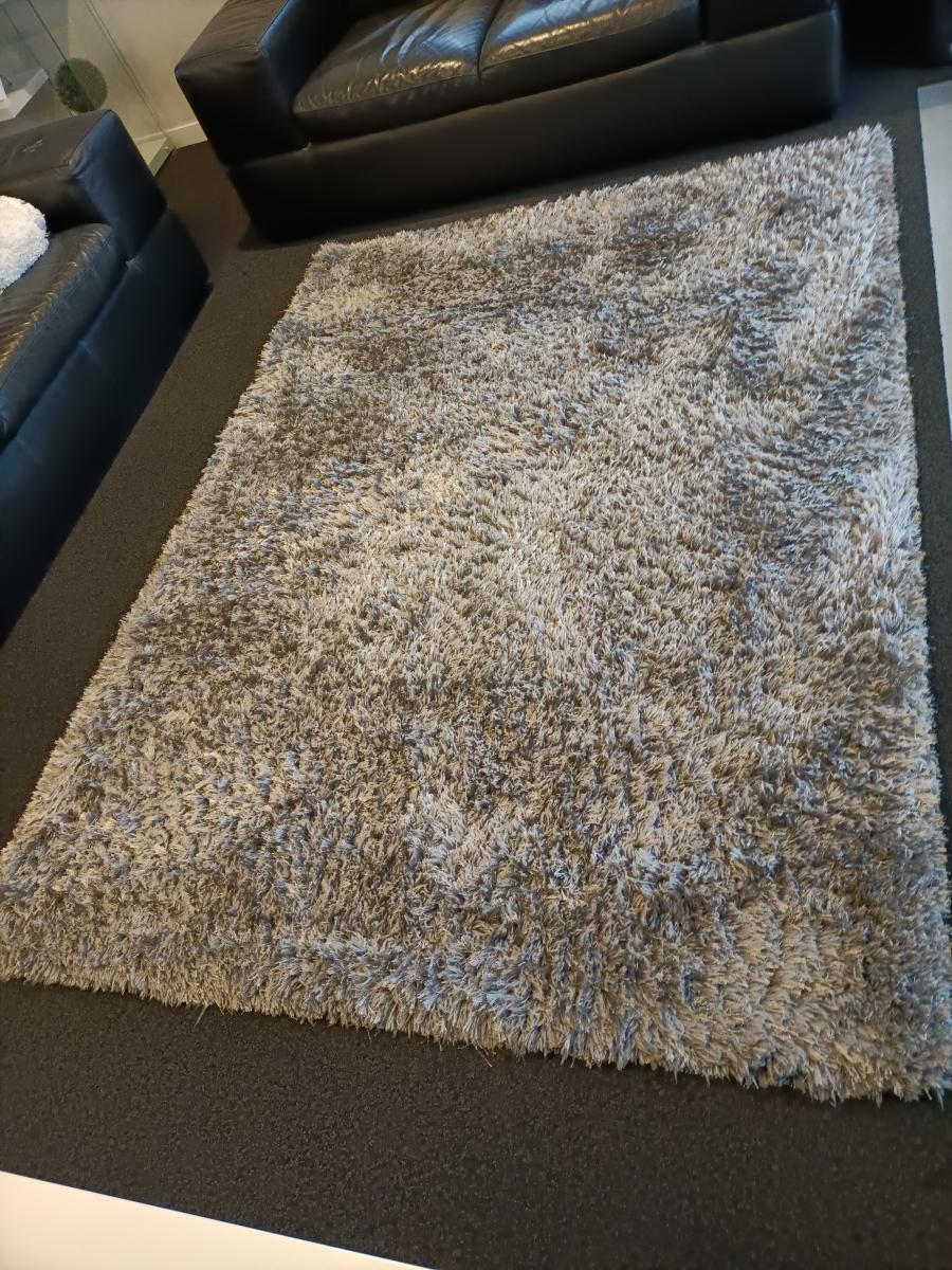 Large shaggy floor rug Emerald Hill brand. Colour silver size 150cm x 210cm. From pet free home very good condition.