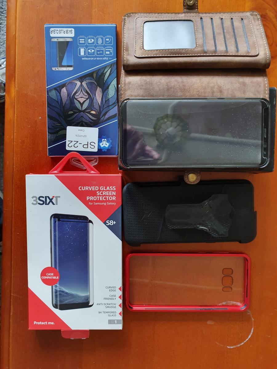 samsung galaxy s 8 plus for sale as I have upgraded.phone is in great condition.it has had a new screen battery and frame in the last 6 months (insurance claim )there is four cases and two screen protectors that go with the phone