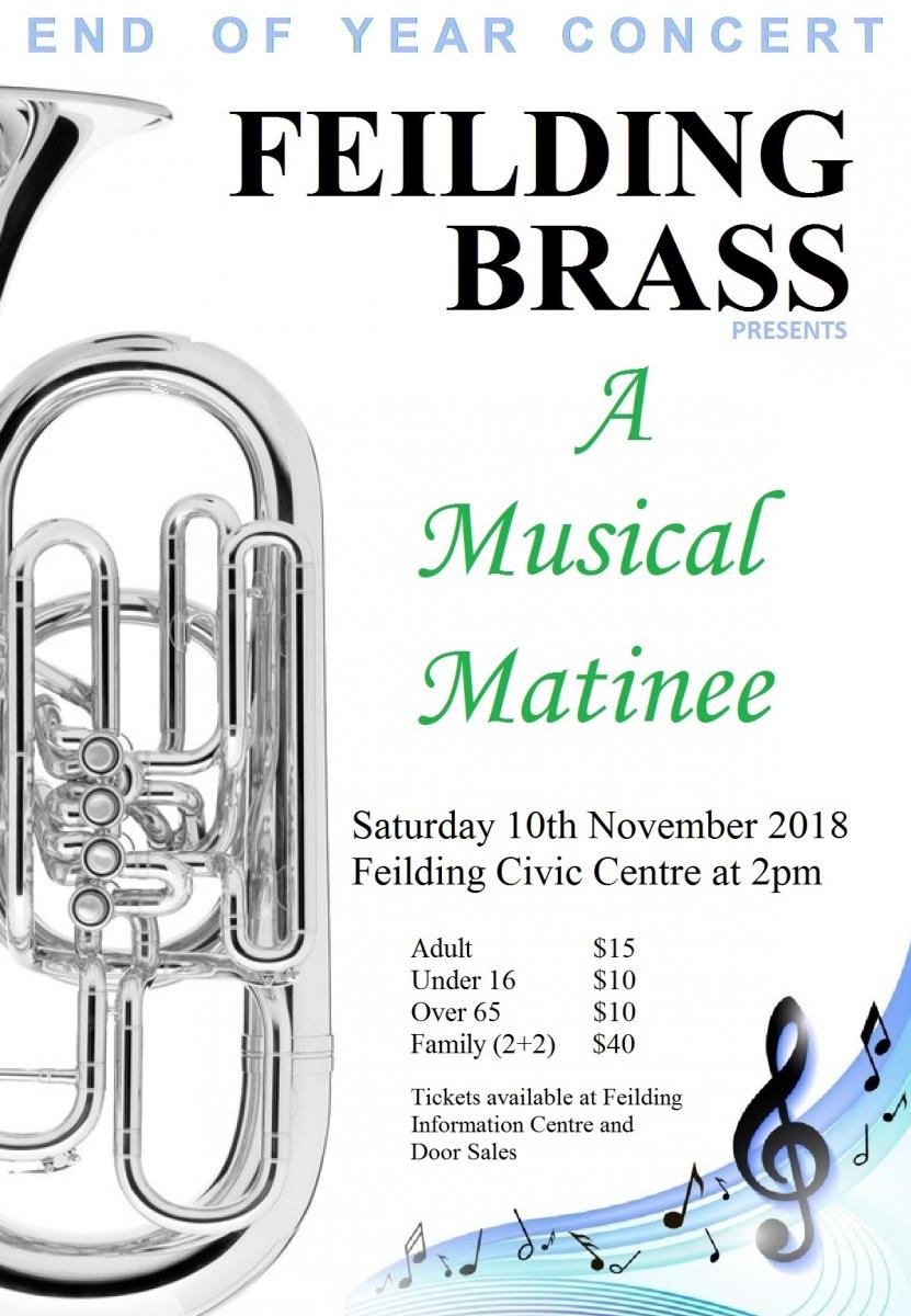Feilding Brass is having its End Of Year Concert this afternoon at 2pm at the Feilding Civic Centre. Tickets available at Feilding Information Centre and Door Sales. Hope to see you there.