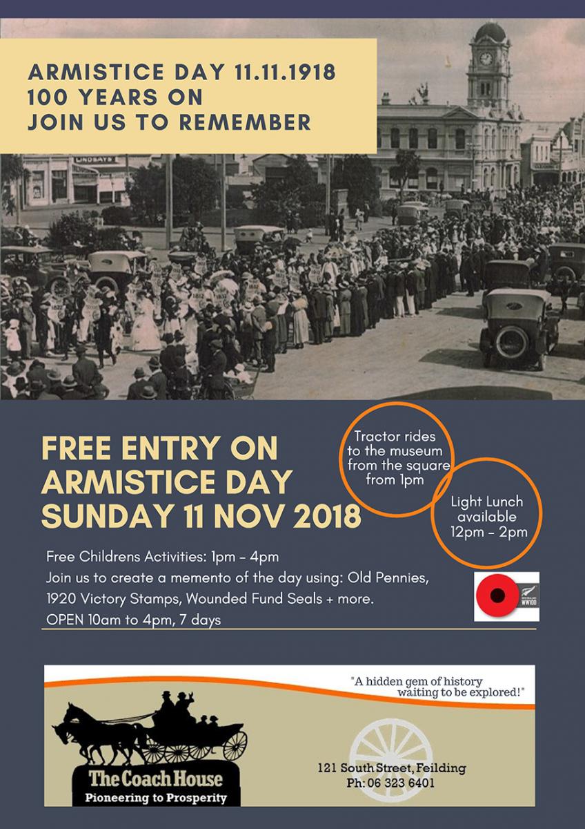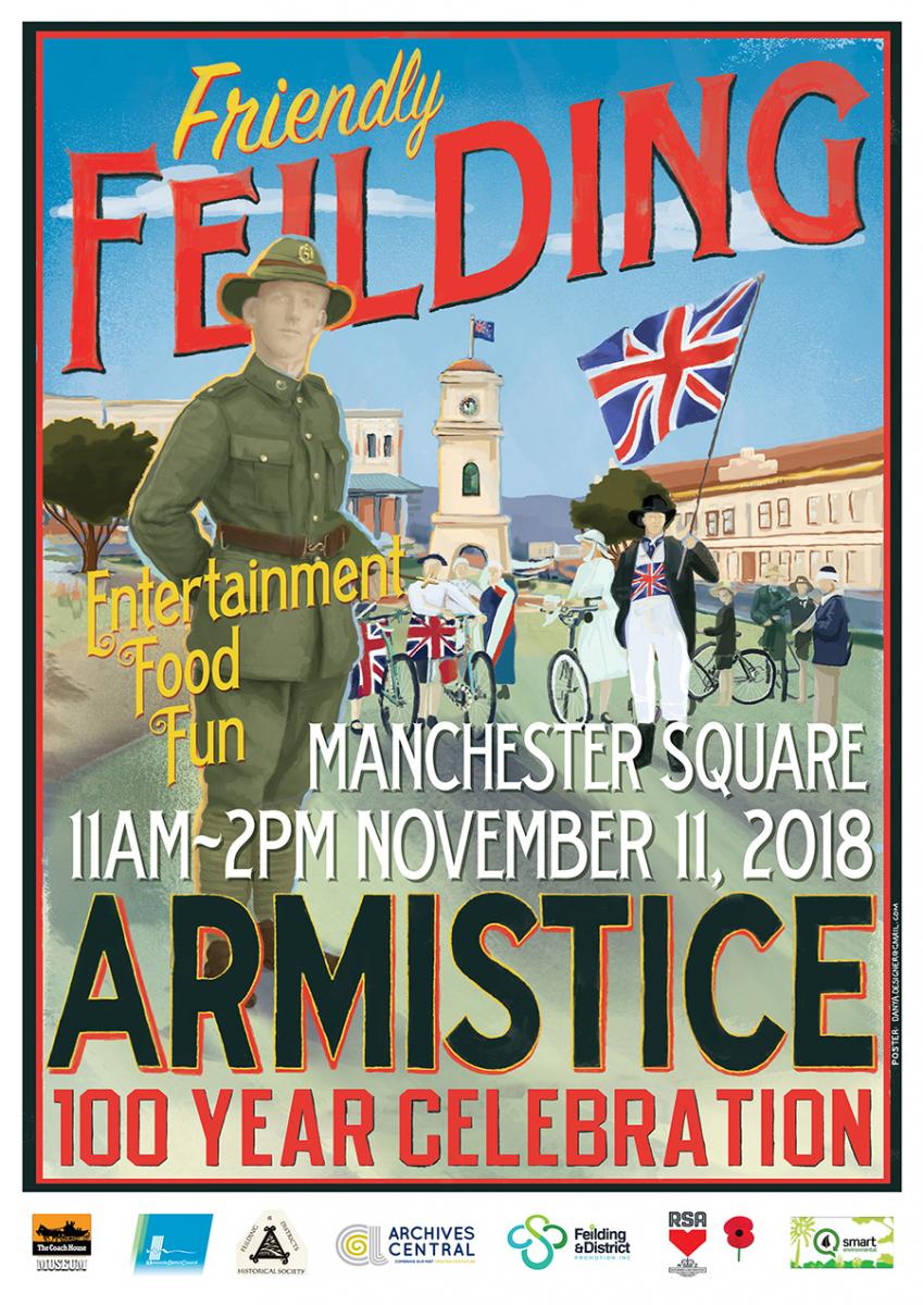On Saturday we mark the 100th anniversary of Armistice Day. Join us in Feilding's Manchester Square to celebrate the this day 100 years ago.