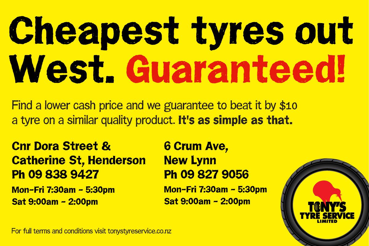 Hello Westies! This is our promise to you - we have the cheapest tyres every day. If you find a lower cash price, we'll beat it by $10 a tyre! We guarantee to beat any cash price in town.