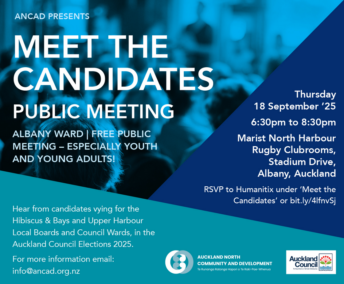 Meet and hear from local candidates. Know the candidates positions on the issues. Make well-informed decisions when voting in this year's local … View moreMeet the candidates for the Hibiscus & Bays and Upper Harbour local boards and the Albany Ward in the Auckland Council elections 2025.