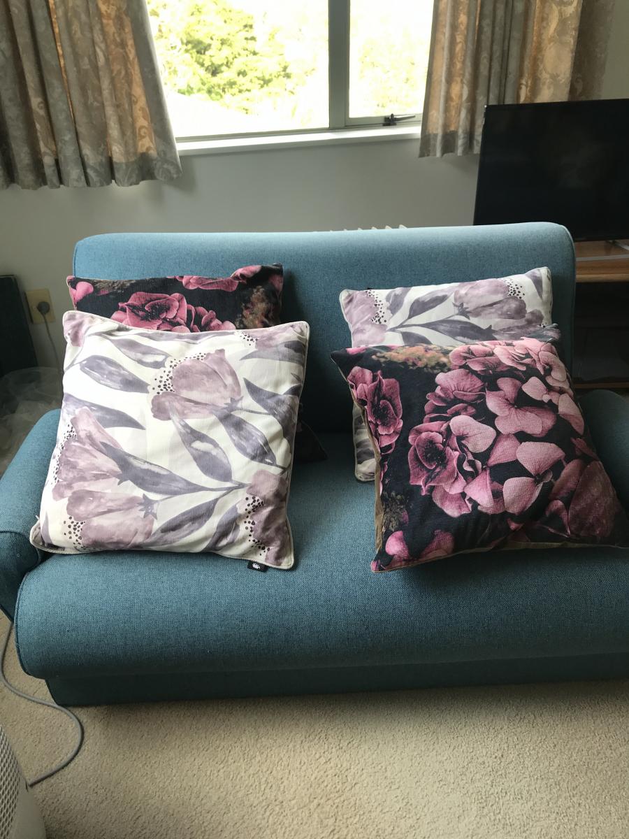 4 Floral Cushions, 2 of each colour. $25 total, condition like new