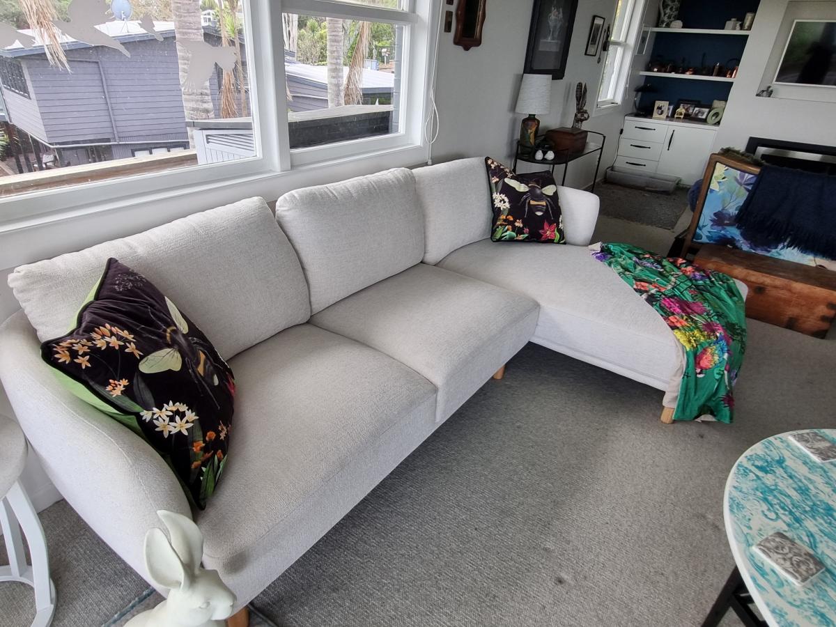 Back Height: 87 cm… View moreThe sofa is cream and in pristine condition. It was used to stage a property up for sale for 6 weeks only.