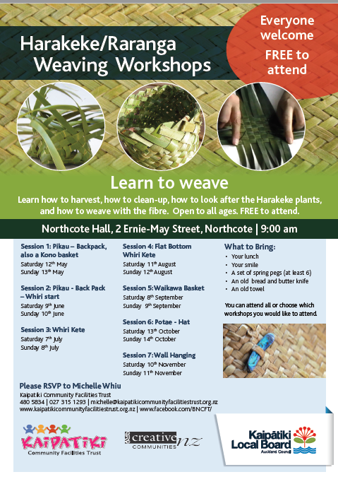 Kaipatiki Harakeke Raranga Weaving Workshops.......