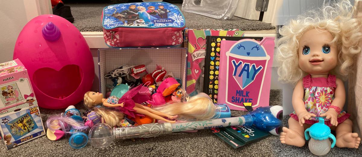 Bunch of toys, couple puzzles & books, a lunchbox insulated bag.