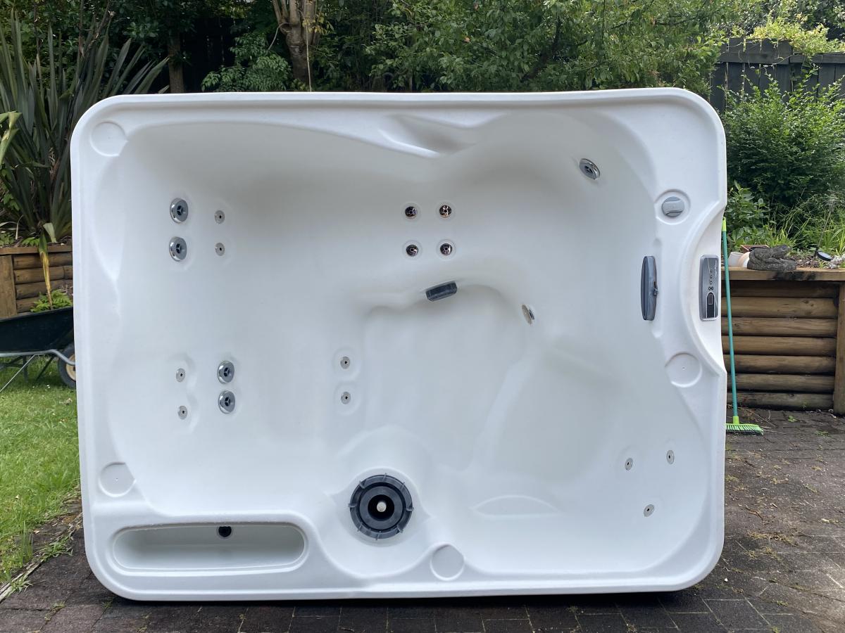 Great condition, about 6 years old, jets, heater and multi colour lights all in working order. This is a 4-person Spa pool. It has a fitted filter. With the Spa you will get a step, a cover, chemicals for the Spa and test strips. One safety lock from the cover is missing.