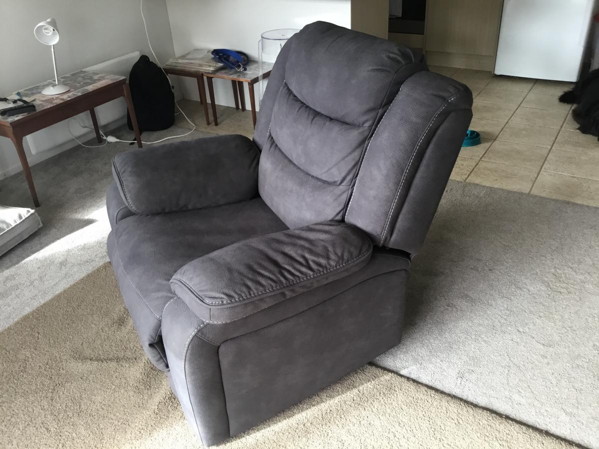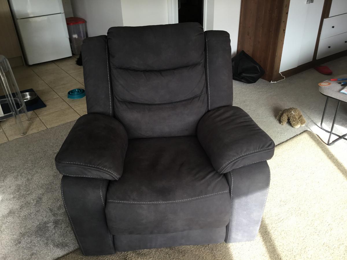 Quite nice grey recliner it is in good clean condition also being manual can be placed any where in your room does not require electricity. It is very comfortable