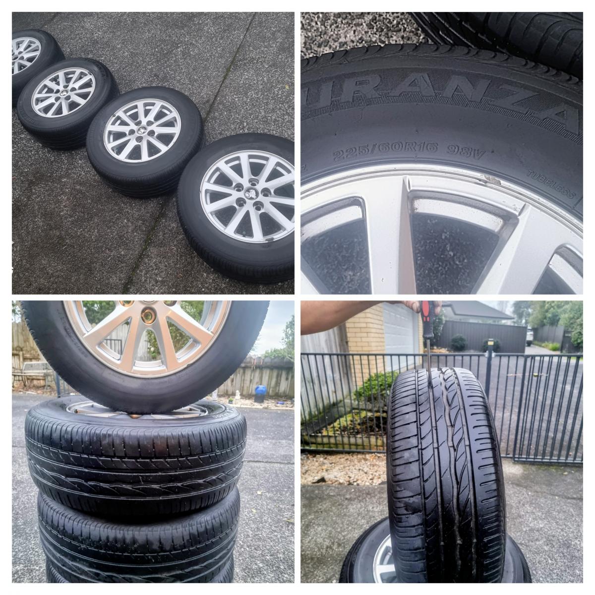 Set of 4 genuine Holden VF factory 16” alloy rims with Bridgestone Turanza tyres.