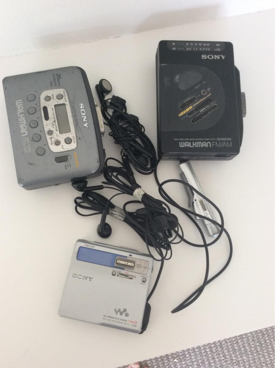 Old radios, Sony minidisc, Walkman