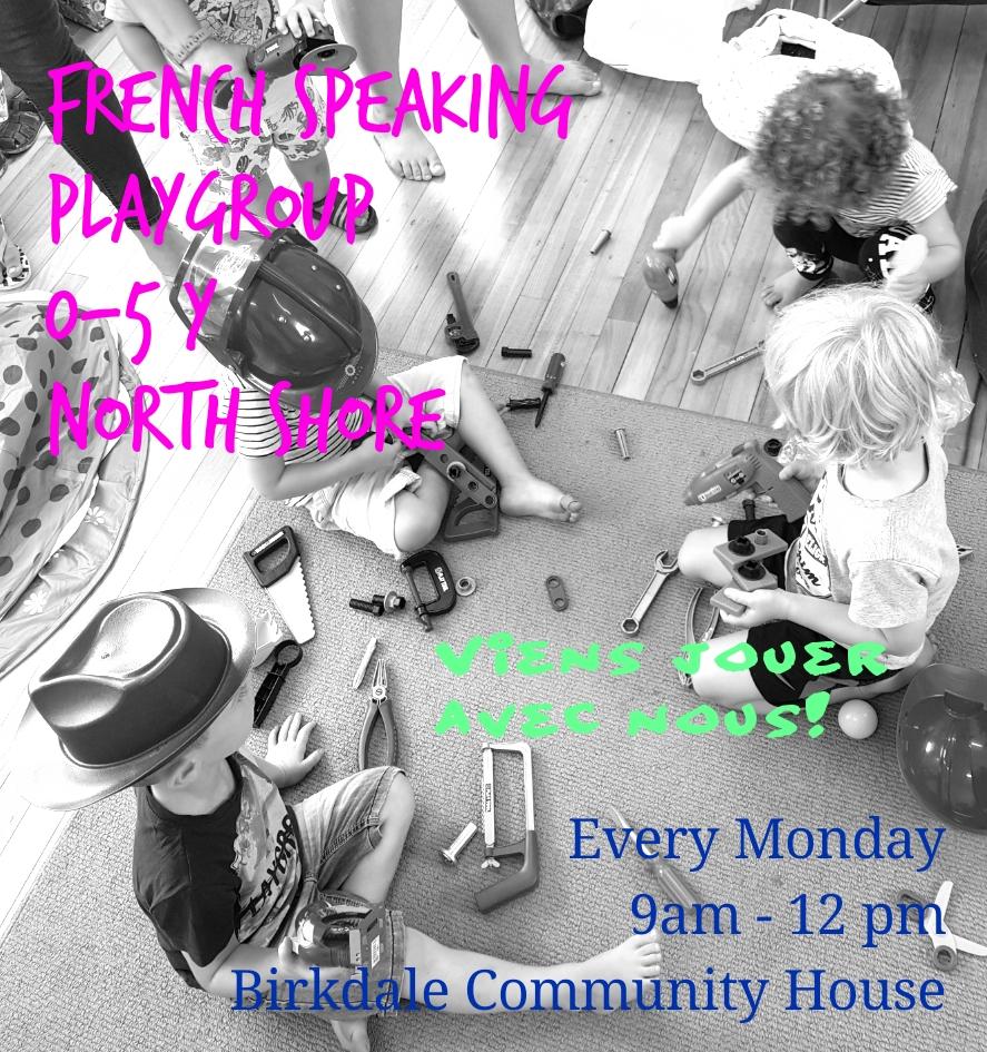 Inspired by les petits lascars (www.petitslascars.co.nz...), this new playgroup aims to get to know other French speaking families in the North Shore to play, have fun and sing in French. Come share our shared morning tea (fruit salade), participate in thematic activities and eat your lunch on site if you wish.