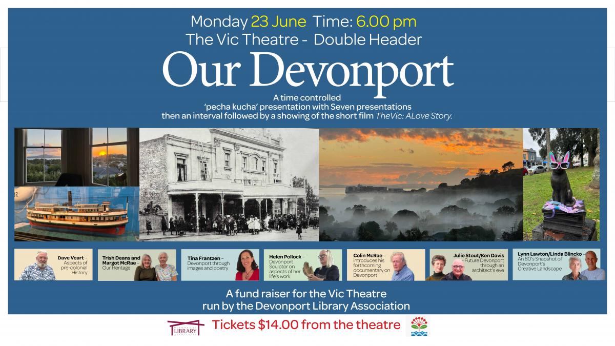 Don't miss "OUR DEVONPORT". The first presentation of this event was an outstanding success, with many people missing out when the RSA had to close its doors to comply with fire regulations - only 150 people could be admitted. Reacting to pressure from around the region, the event … View moreDon't miss "OUR DEVONPORT". The first presentation of this event was an outstanding success, with many people missing out when the RSA had to close its doors to comply with fire regulations - only 150 people could be admitted. Reacting to pressure from around the region, the event will be repeated at The Vic Theatre on Monday 23 June at 6.00pm. Tickets from the Vic or book online at ticketing.oz.veezi.com......