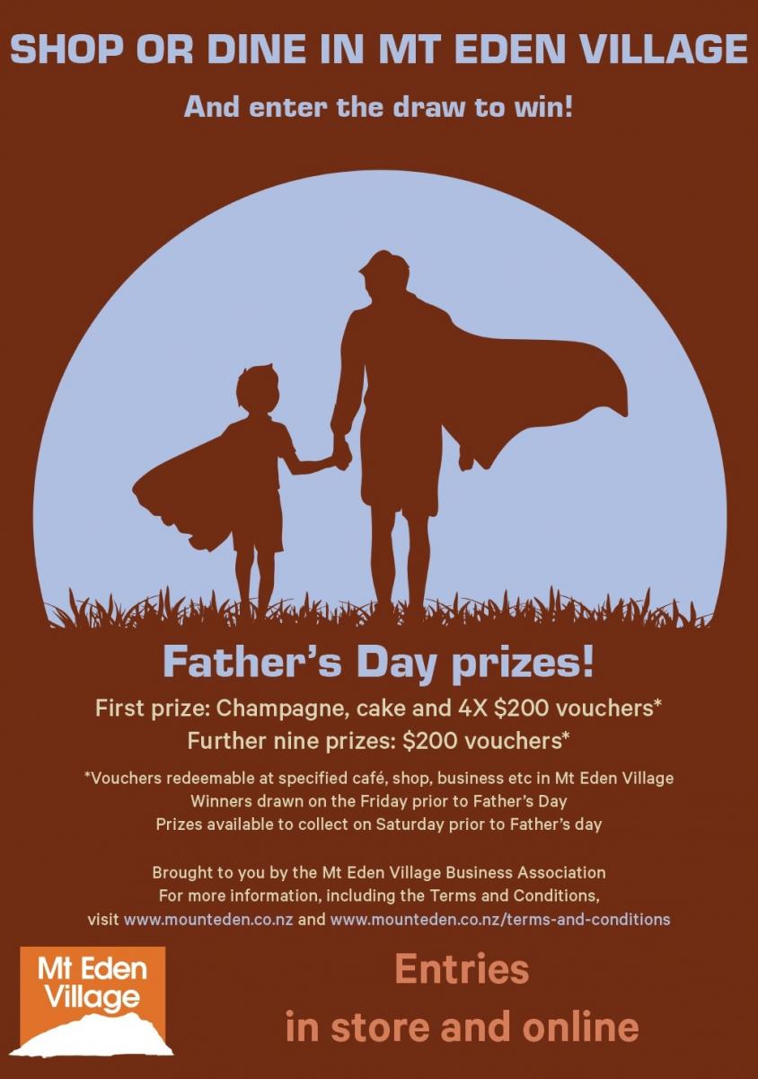 SHOP OR DINE in Mt Eden Village and enter the draw to win Father’s Day prizes!