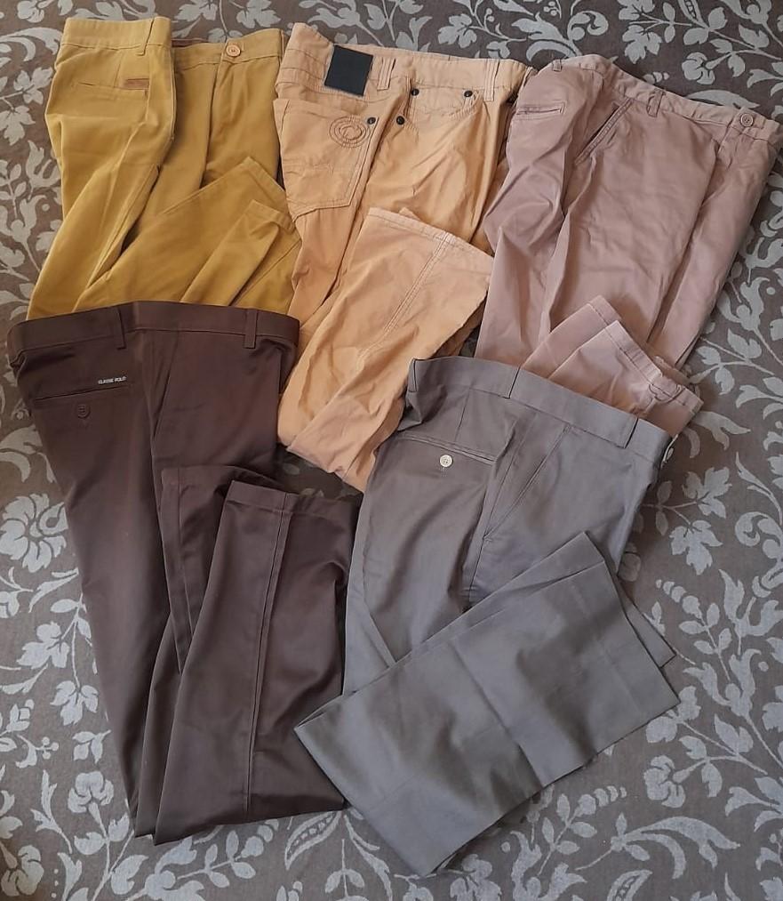 Four long-sleeved men's shirts and two pairs of trousers size XXL (photo 1) and five men's trousers size L (photo 2) which the price is for the items in each photo.