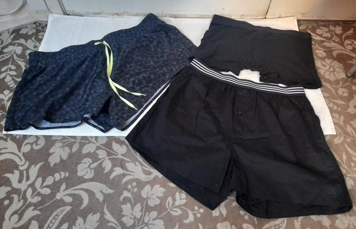Three pairs of men's shorts size M which can be shipped for a little extra.