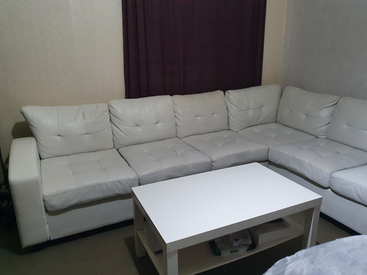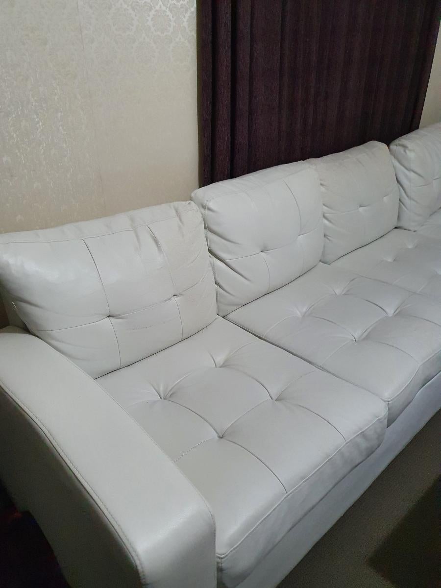 Nice and comfy. We bought this 2years ago. It is part of another section that makes an L shape. Nice and comfy.