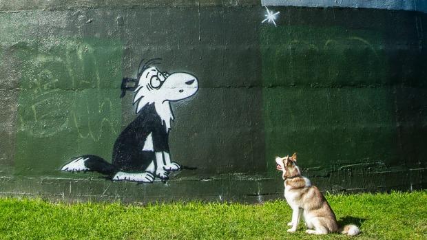 A painting of cartoonist Murray Ball's legendary Dog character from Footrot Flats has appeared at the top of Big King Reserve.