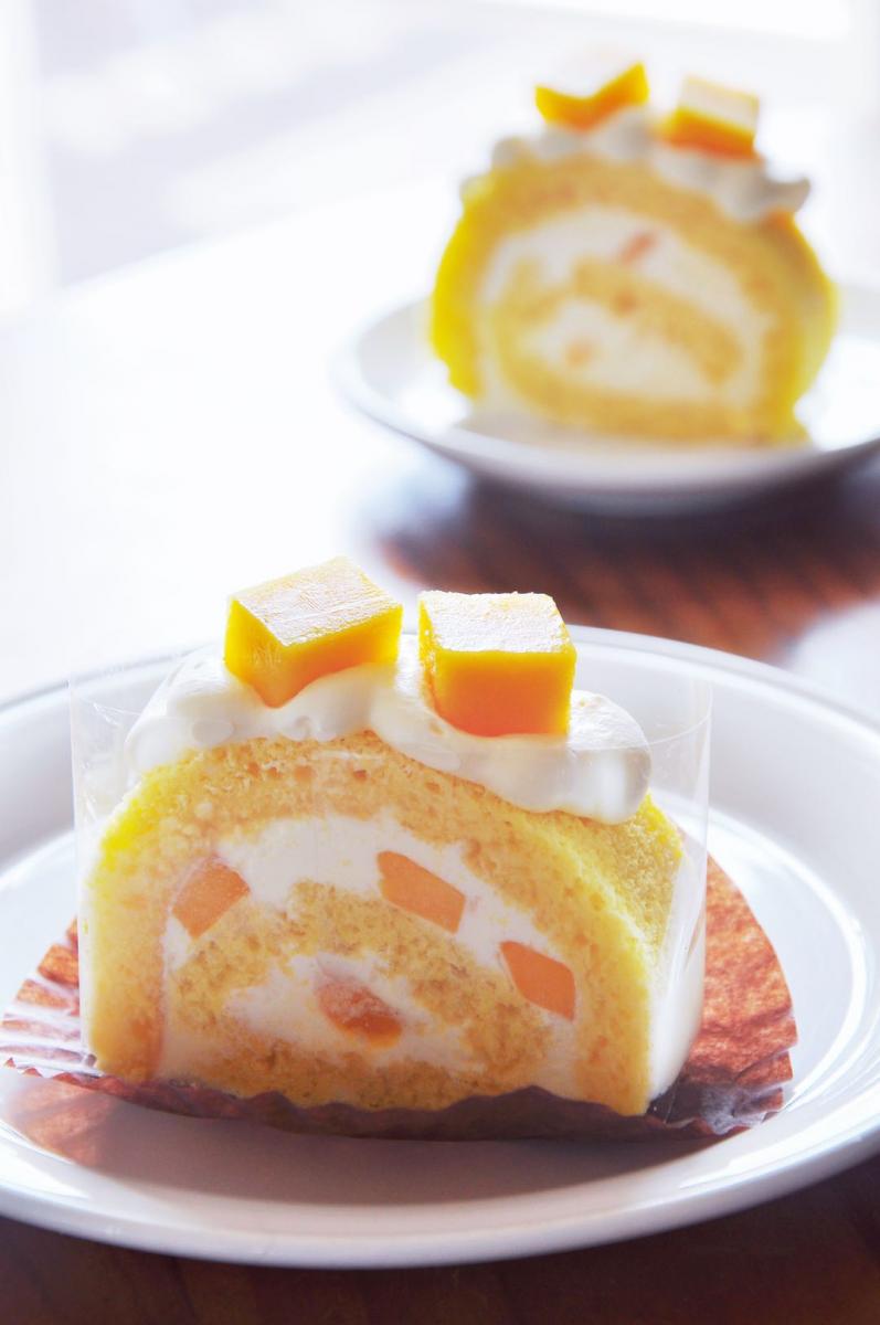 We offer very fresh mango cake roll, it only costs $6 each, or $10 for two, or $30 for six in a box.