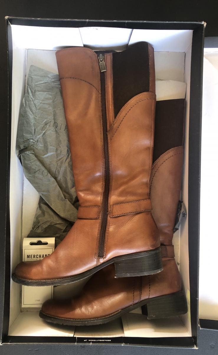 Very good condition • In original box • Length of sole: 26 cm • Width of sole: 9 cm • Height of boot: 40 cm • Height of heel: 4 cm • Comes with a pair of unused Merchant Heel Grips • Pickup in Green Bay (we live opposite Green Bay High School)