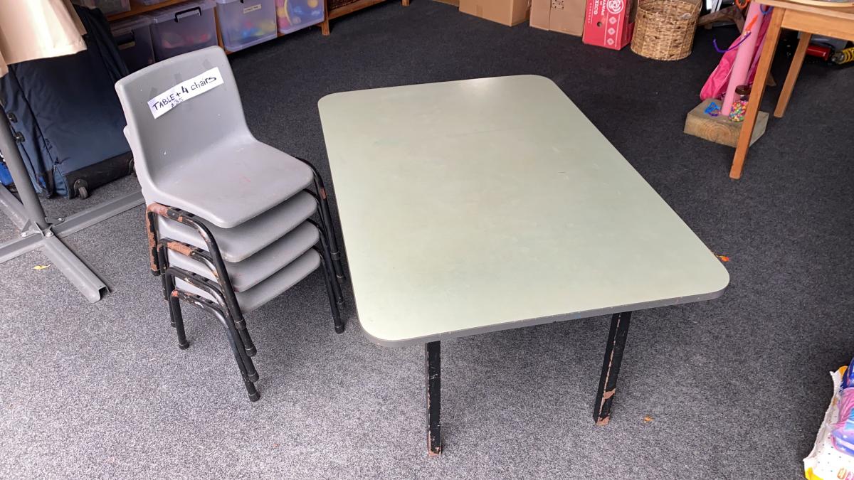 Sturdy (quite heavy) table with 4 very stable chairs - perfect as an art and crafts table for preschoolers.
