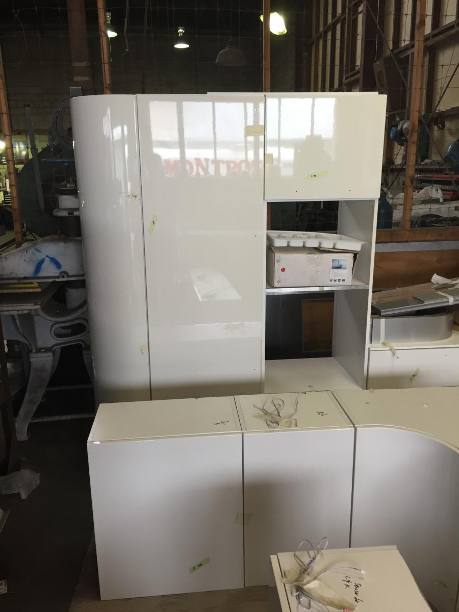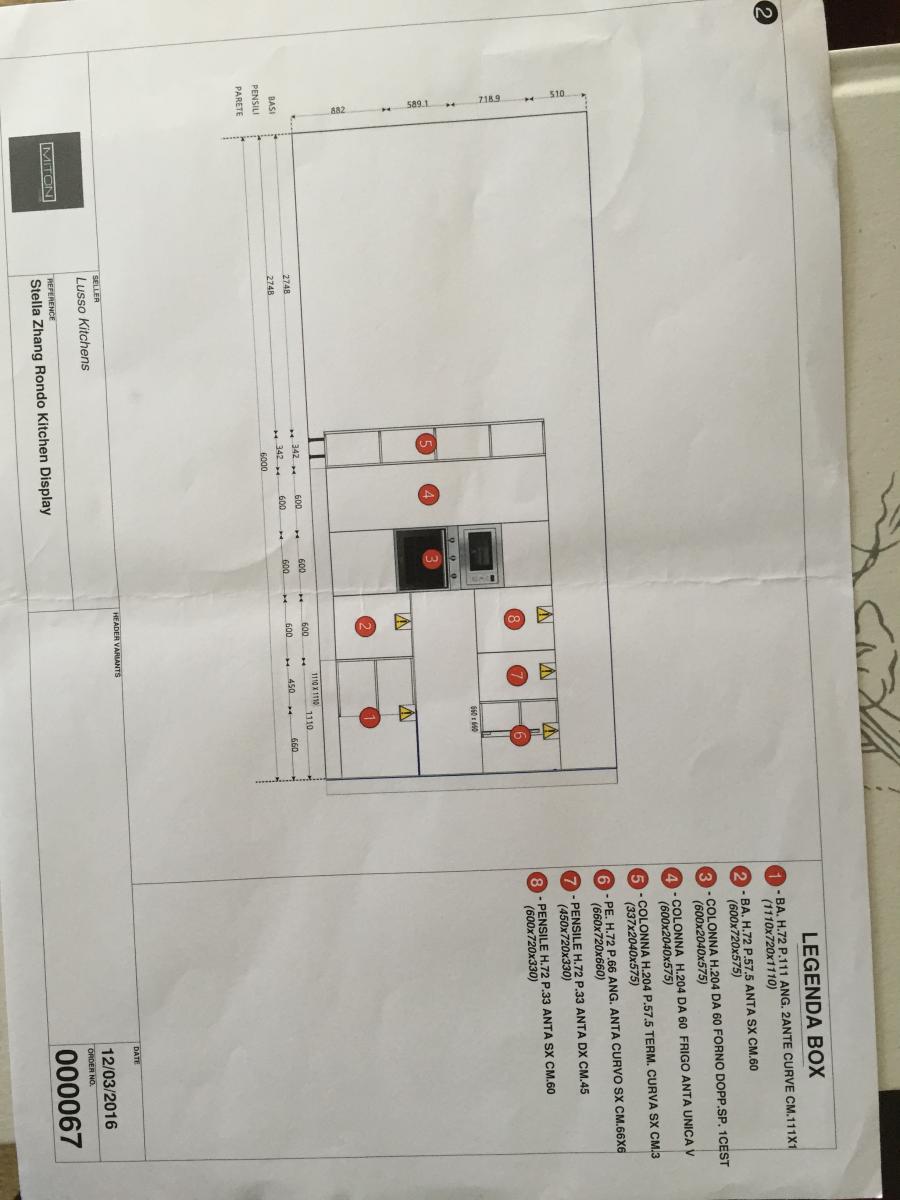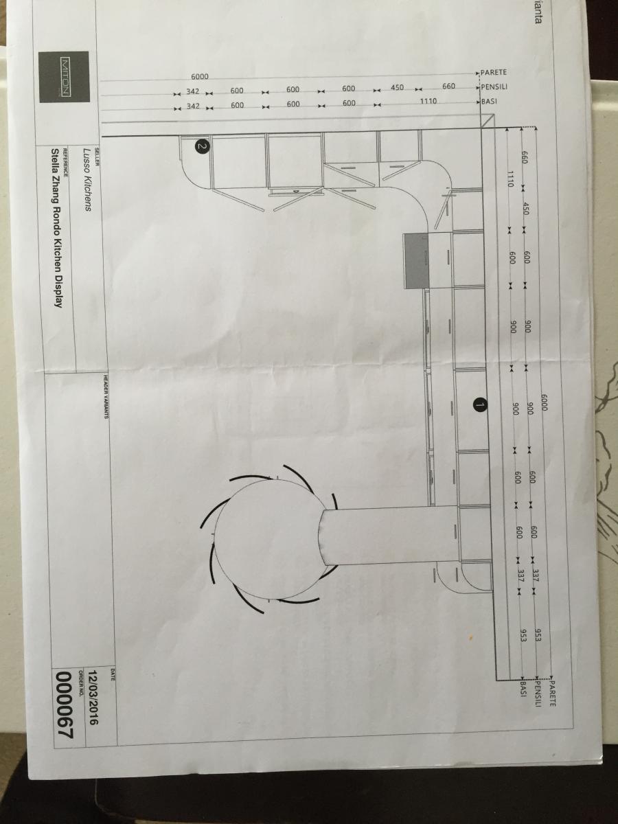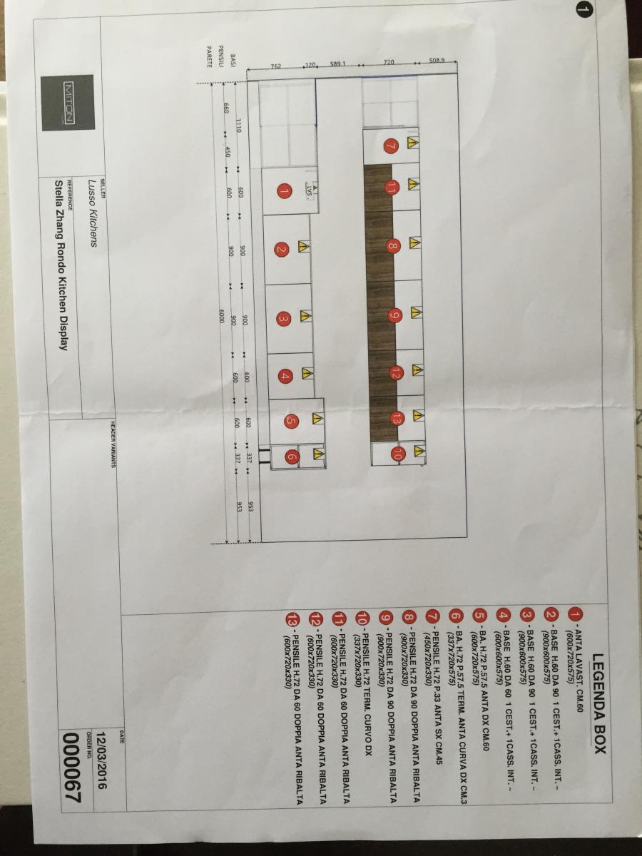 The kitchen plans are attached, as well as photos of the kitchen installed in the showroom, and photos of the kitchen within the warehouse. The kitchen includes the following: