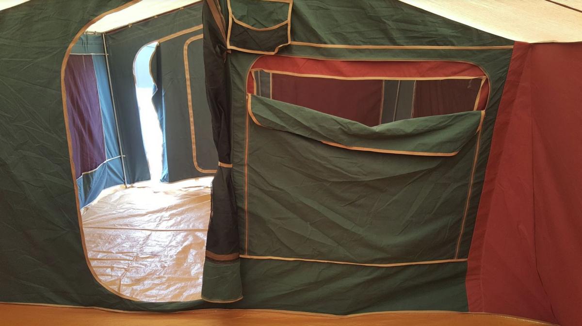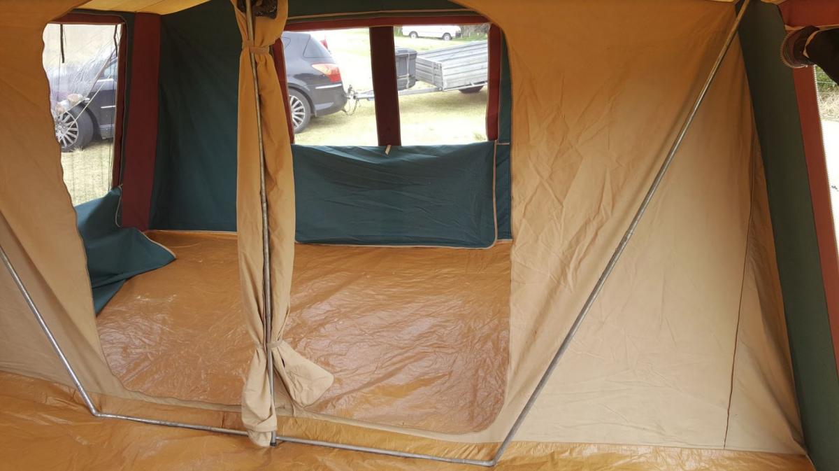 Kiwi camping Balmoral tent with full sunroom. Everything works all the zips, windows and doors. Most importantly this tent is very waterproof. The backroom can be divided for children etc.