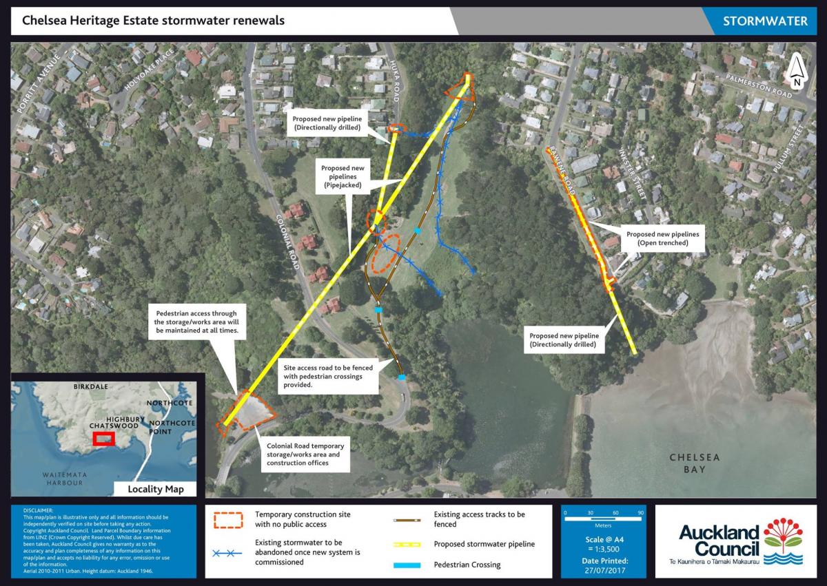 * Diversion of existing pipelines in Huka Road and Rawene Road.