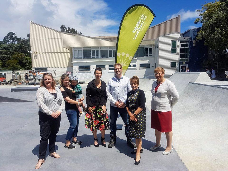 Pictured: Kaipatiki Local Board members and skateboarders after a blessing to open the site.
