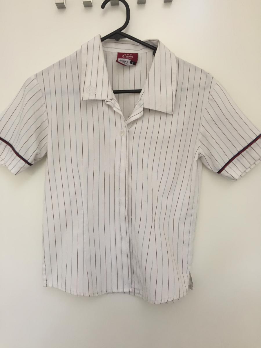 Girls blouses: 2 x size 4, one with light marks, one with faint green stain, $10 for both