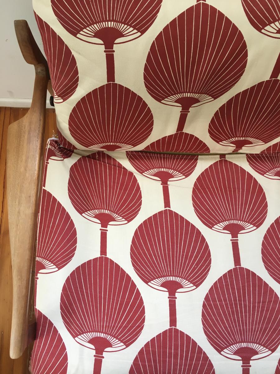 It is upholstered in a stunning screenprinted fabric designed by Florence Broadhurst, whose screenprints and fabrics are highly sought after.