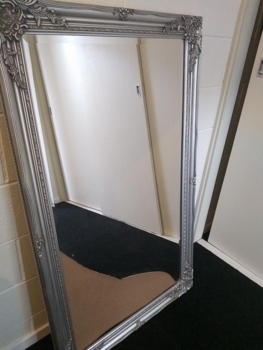 I took it from a garage sale and I love it. However, is too big for our new apartment. Measures are 125 cm x 75 cm. The glass is broken but the frame is amazing.