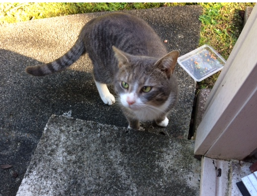 Puss has been coming to 25 Mannering Place each day for some food and a chat. He seems well cared for so I am keen to find his owners.