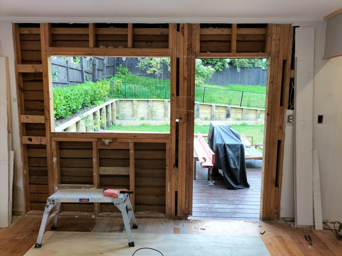 Water damaged floors, front/back door, kitchen, bathroom, laundry.