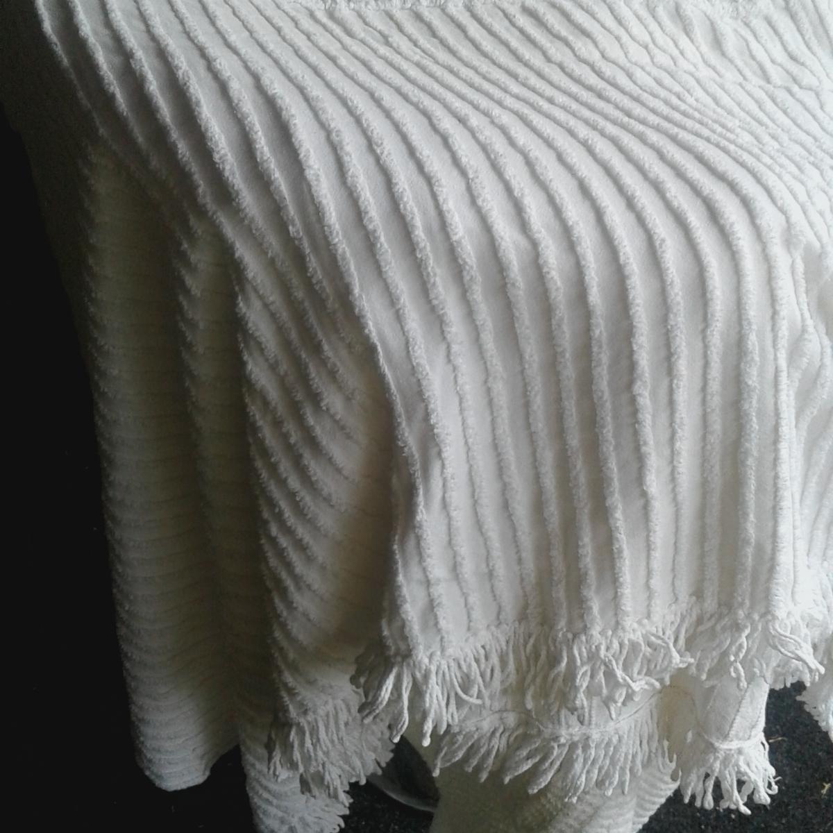 Candlewick white single bedspread with fringe. May be the odd light mark, no holes and not well worn, still nice and soft.