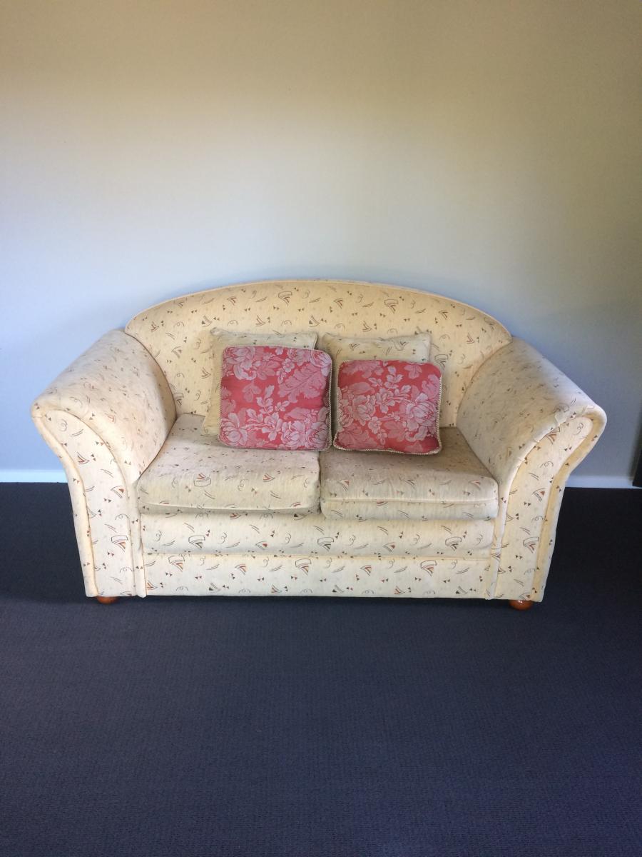 Two seater sofa in good condition. Includes the four cushions shown in photo. Must collect from Greenhithe.