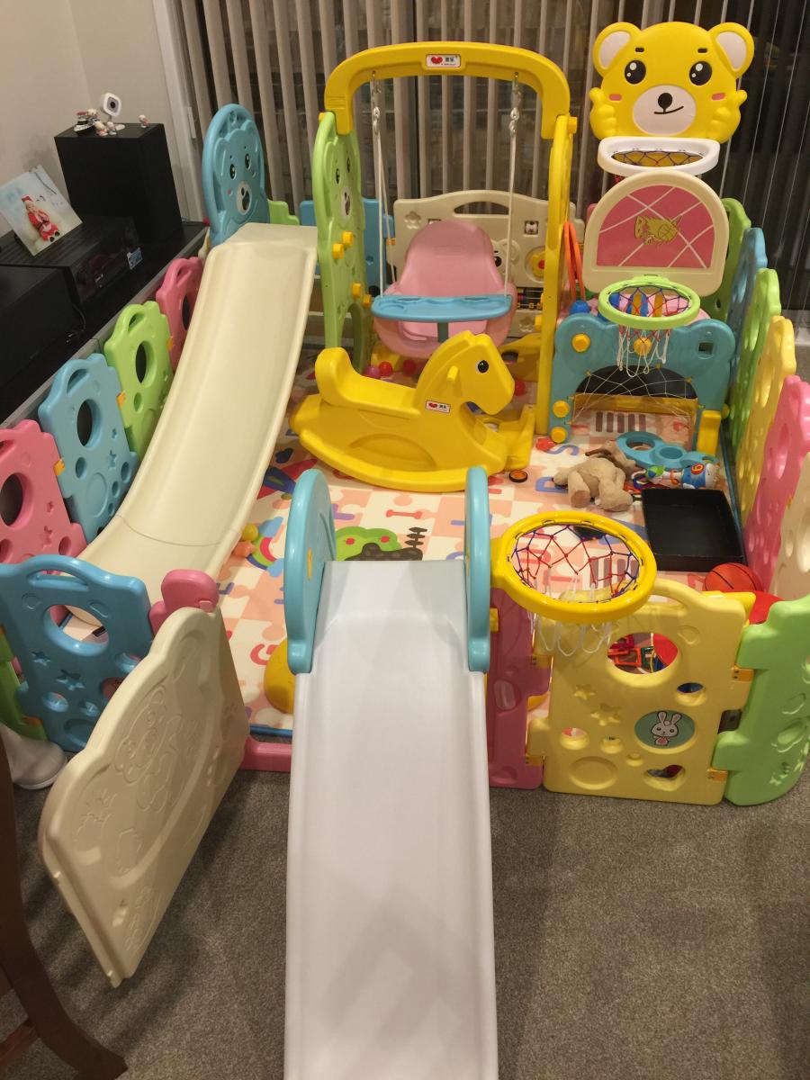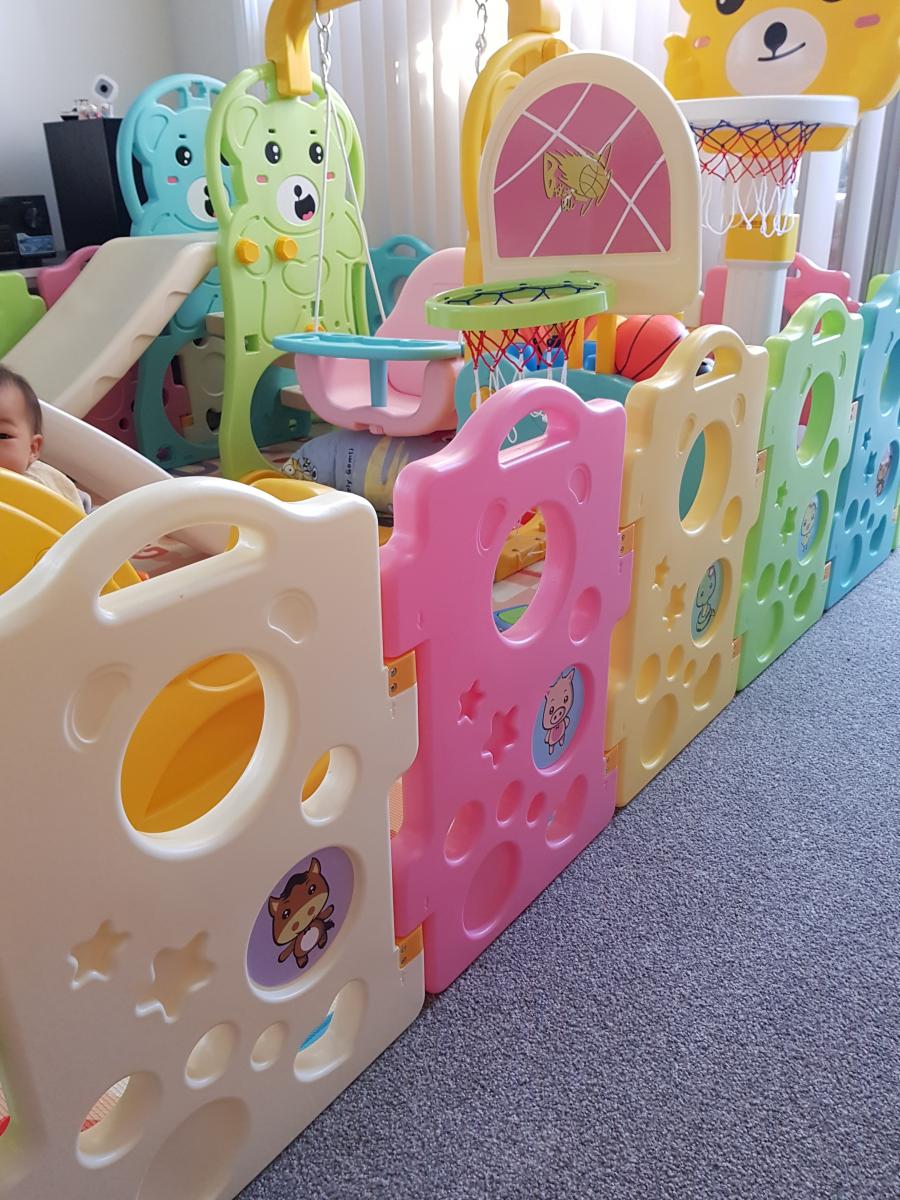 The price listed is the smallest size of playpen which is 1.58*1.96m. We also have more panel set… View moreWe have brand new baby indoor playpens with different sizes and big slide set with all the activities balls like tennis basketball football bowling golf on sale. Anyone interested? Please contact me.
