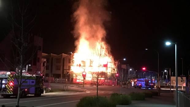 A massive blaze ripped through the unoccupied three-storey building in the suburb of Hobsonville at 3:55am.