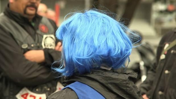 Doused in blue hair dye and tinsel, more than 200 bikers roared their engines for the the annual Blu…