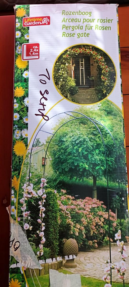 Wedding arch (never used) with white chiffon drapery. Some complimentary white flowers to be given away with this purchase.
