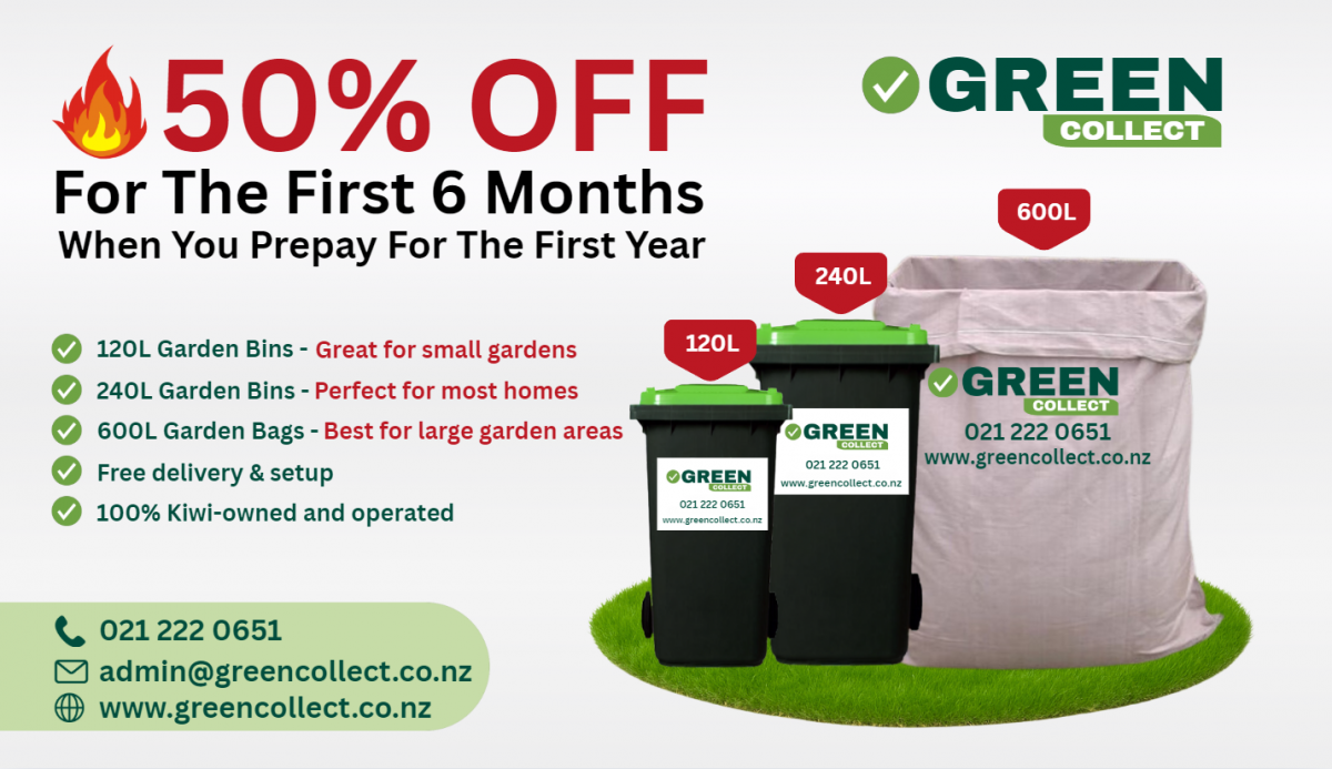 ✔️ 120L Garden Bin … View moreWe are excited to continue offering Auckland homeowners 50% off the first 6 months when you prepay for a full year.