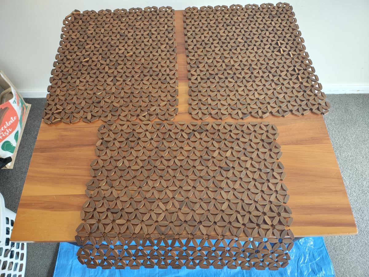 Upgrade your dining setup with this beautiful set of 3 wooden beaded placemats! Crafted from high-quality wood beads in an intricate floral design, these mats add a touch of natural elegance and boho charm to any table. They're flexible, easy to clean, and perfect for protecting surfaces while… View moreUpgrade your dining setup with this beautiful set of 3 wooden beaded placemats! Crafted from high-quality wood beads in an intricate floral design, these mats add a touch of natural elegance and boho charm to any table. They're flexible, easy to clean, and perfect for protecting surfaces while enhancing your meals or gatherings.